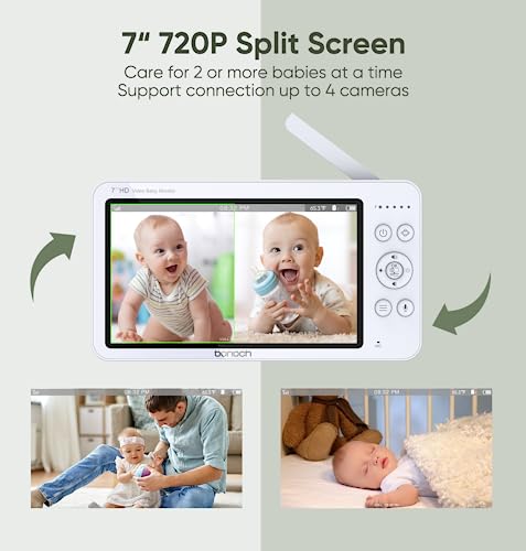 Dual Camera Baby Monitor 7 Inch 720P HD Split Screen No WiFi Long Range 1000ft VOX Night Vision
