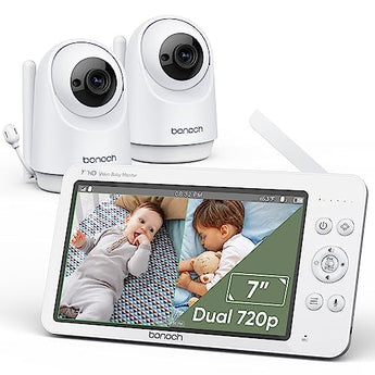 Monitor two babies at once with a reliable, private video system that operates without WiFi. This dual-camera setup features a 7-inch 720P HD display, a long-range 1000 ft transmission, and a robust 6000 mAh battery. With split-screen viewing, you can watch both cribs side by side, while the remote pan-tilt-zoom keeps you in control from anywhere in the room.